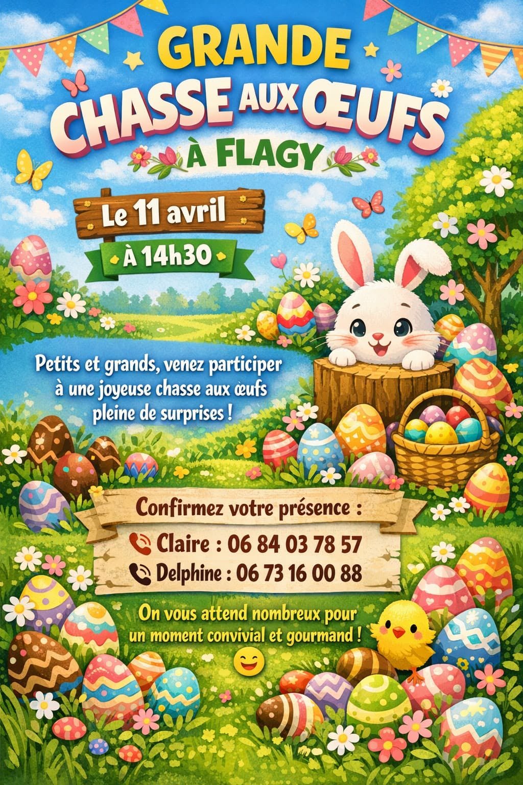 📅Le samedi 11 avril à 14h30, les enfants de la commune de Vellefrie sont invités par les enfants de Flagy afin de participer à notre Grande Chasse aux Œufs au stade!
