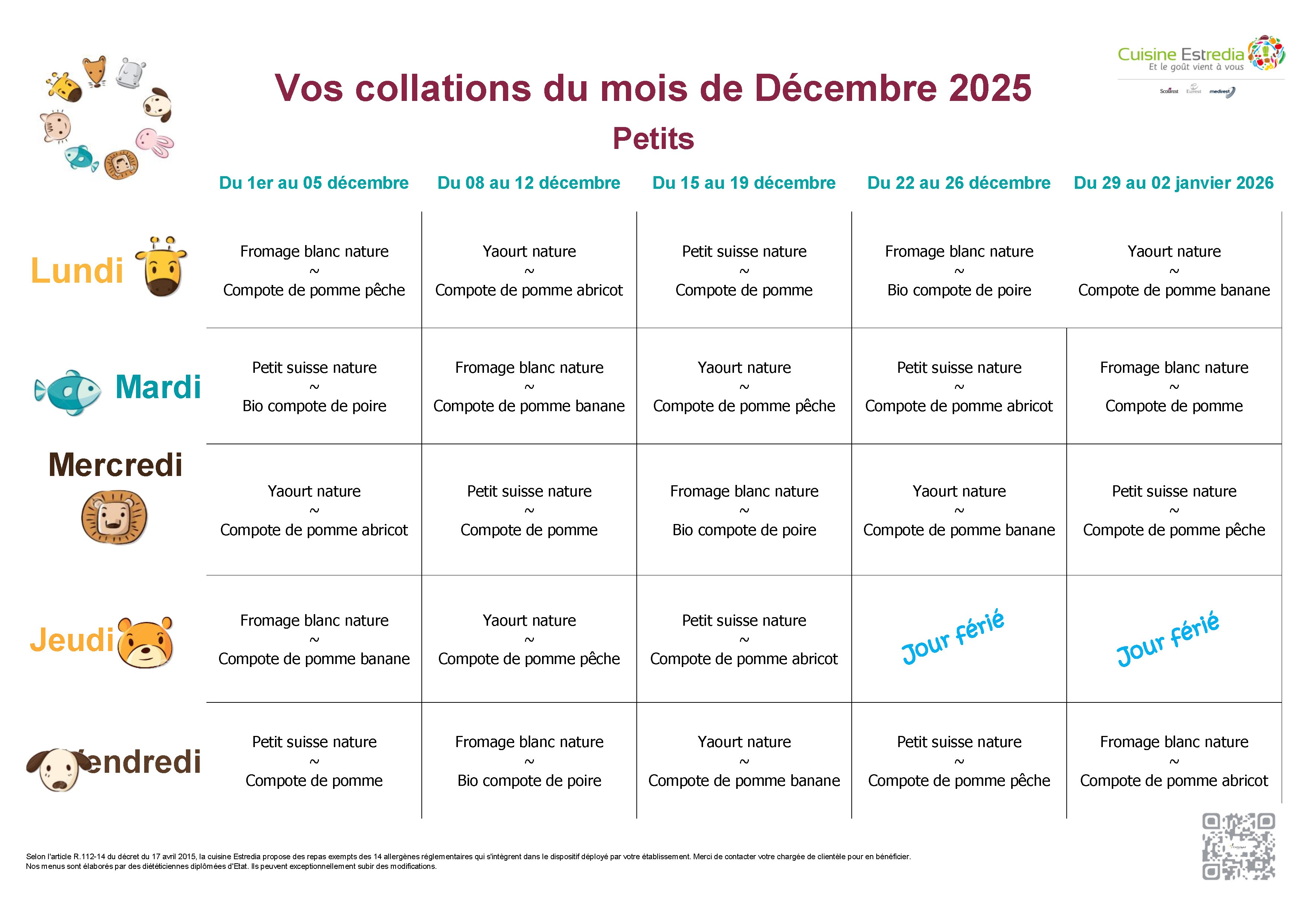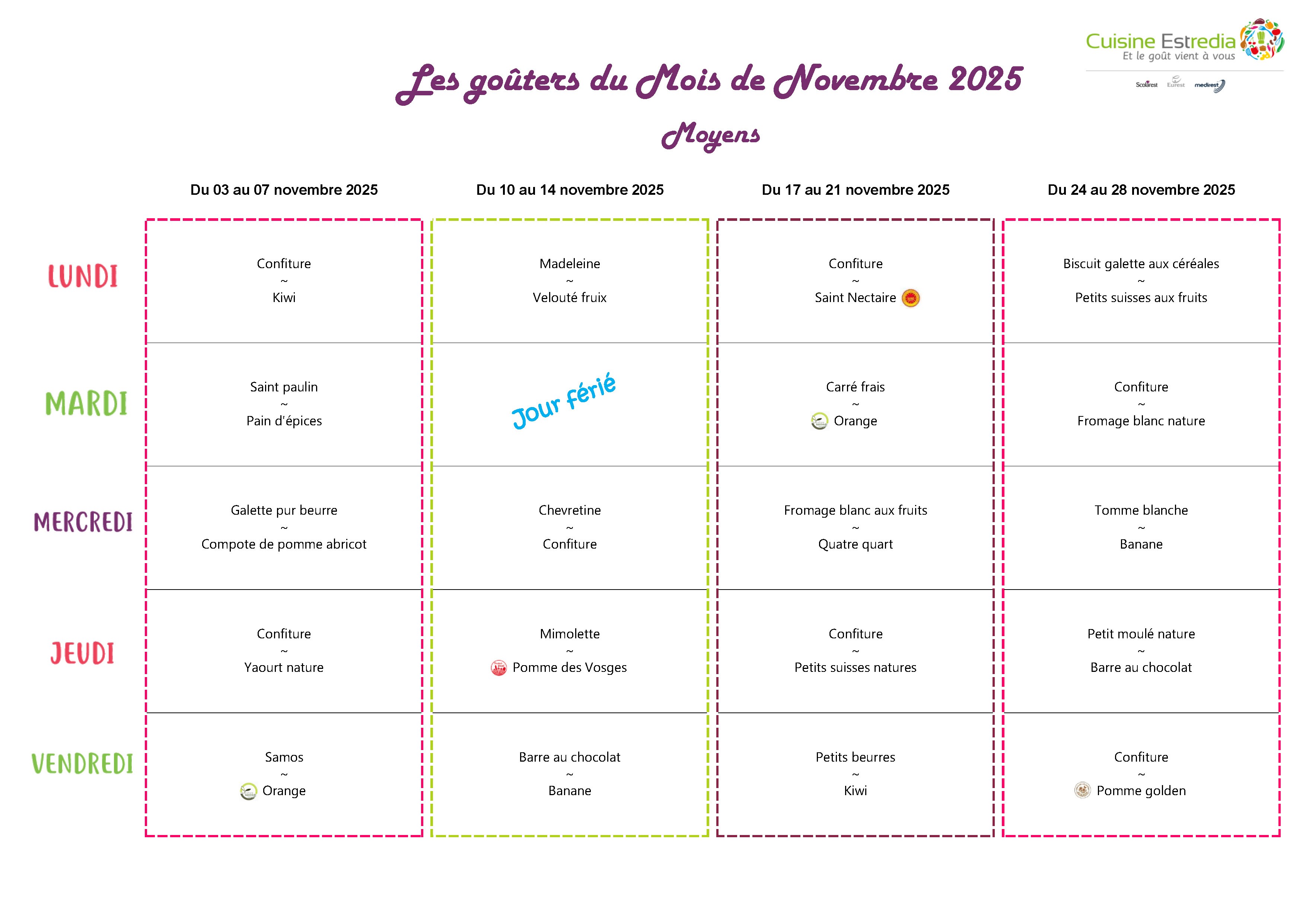 MENU DÉCEMBRE - GOÛTER MOYENS